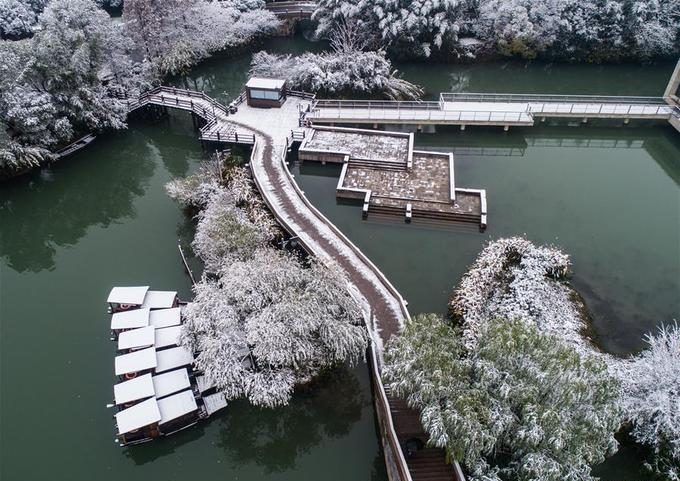 Cột Đá Sa Thạch Hóa Tuyết. Khi tuyết rơi, hàng ngàn cột đá sa thạch khổng lồ tại Công viên Rừng Quốc gia Trương Gia Giới như được tạc thêm những đường nét tinh xảo, uy nghi hơn. Đặc biệt, khu vực Viên Gia Giới (Yuanjiajie) với cột Núi Hallelujah và Thiên Tử Sơn (Tianzishan) tạo nên một khung cảnh băng tuyết kỳ vĩ, lãng mạn như bước ra từ thế giới thần thoại.