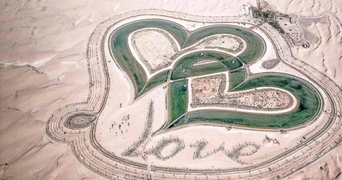 Hồ Trái Tim Al Qudra là điểm đến độc đáo giữa sa mạc Dubai, gồm hai hồ nước hình trái tim khổng lồ nối liền nhau với tổng diện tích lên tới 550.000m² – lớn đến mức có thể nhìn thấy từ không gian.