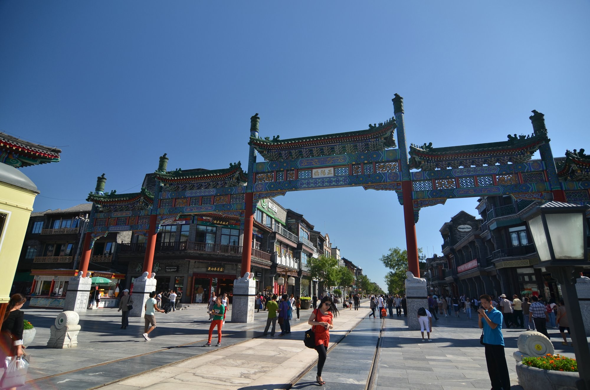 Trái ngược với vẻ hiện đại của Thượng Hải, Qianmen Street mang đến cảm giác như đang lạc vào một Bắc Kinh cổ kính. Con phố này đã tồn tại hàng trăm năm và từng là trung tâm buôn bán sầm uất thời nhà Minh – nhà Thanh. Ngày nay, nó được tu bổ thành phố đi bộ, kết hợp giữa mua sắm, ẩm thực và trải nghiệm văn hóa.