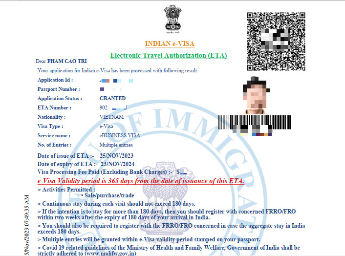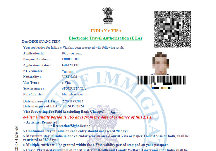 Mẫu kết quả eVisa Ấn Độ tại PHM Travel