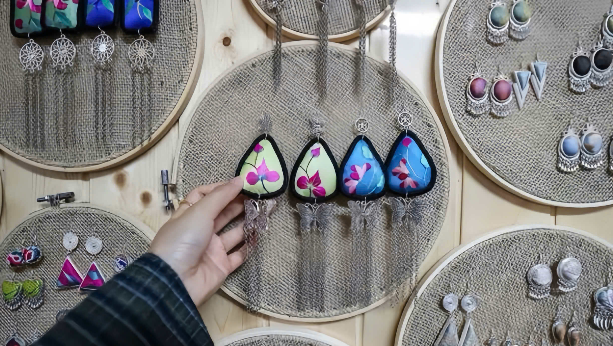 Hoa tai kết hợp trang sức bạc + thêu chữ Miêu được bán ở những khu chợ dân tộc