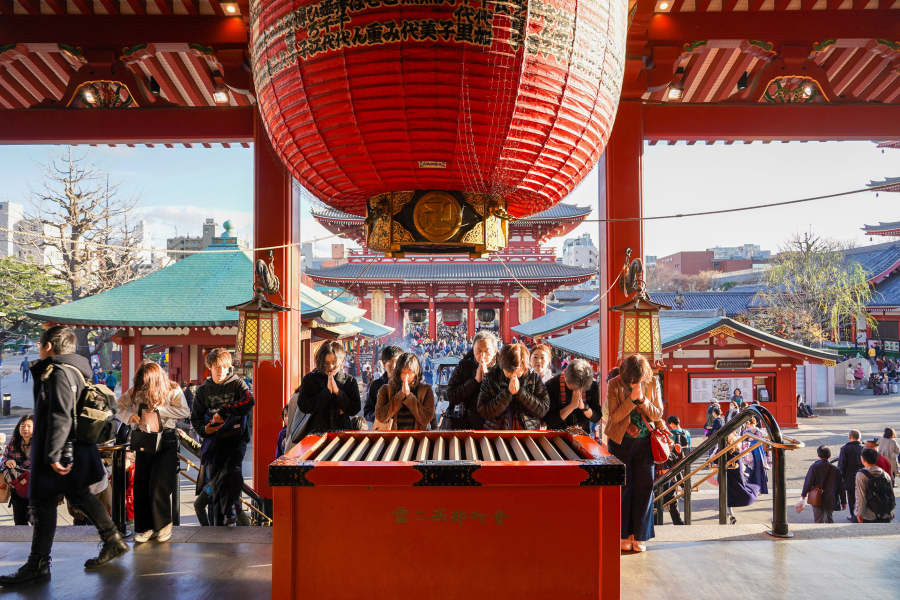 Tiếng chuông chùa ngân vang 108 lần trong đêm đông giá lạnh để xua tan những muộn phiền năm cũ. Tại các ngôi đền lớn như Meiji Jingu (Tokyo) hay Fushimi Inari (Kyoto), bạn sẽ thấy dòng người xếp hàng trong trật tự, cùng cầu nguyện cho một năm mới bình an và bốc những quẻ xăm may mắn (Omikuji).