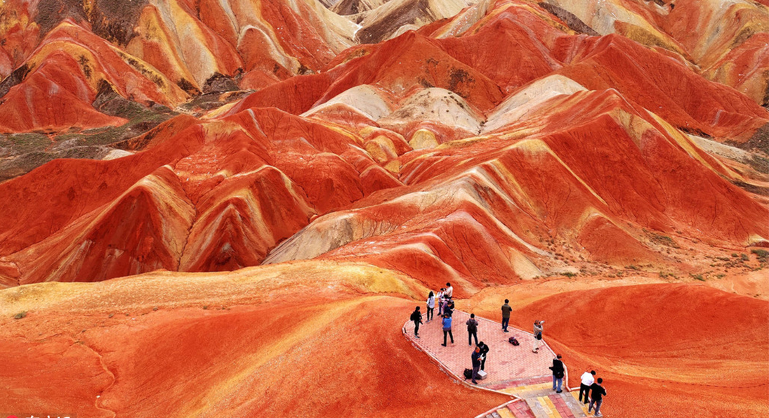 • Công viên địa chất Trương Dịch Đan Hà – hay còn gọi là Địa Mạo Đan Hà là một khu vực cực kì rộng lớn, trải dài từ miền Đông Nam đến Tây Bắc của Trung Quốc với nhiều cảnh đẹp hùng vĩ như tranh vẽ. Trong đó nổi tiếng nhất là dãy núi Đan Hà “ 7 sắc cầu vồng”. Đến đây bạn sẽ không khỏi thán phục vẻ đẹp tuyệt mỹ của vùng đất sa thạch đỏ rộng lớn kéo dài từ Đông Nam đến Tây Bắc Trung Quốc. Bên cạnh những khối sa thạch đỏ hình gợn sóng độc đáo, du khách có thể trải nghiệm cuộc đi bộ đường dài đầy thú vị để chiêm ngưỡng cảnh đẹp ở các thung lũng, các dãy núi đá hùng vĩ. Tất cả tạo nên một Địa Mạo Đan Hà sống động và tươi đẹp. Địa Mạo Đan Hà quả là một tiên cảnh trần gian khiến ai cũng phải ngỡ ngàng trước vẻ đẹp hoang sơ, kì vĩ của thiên nhiên.